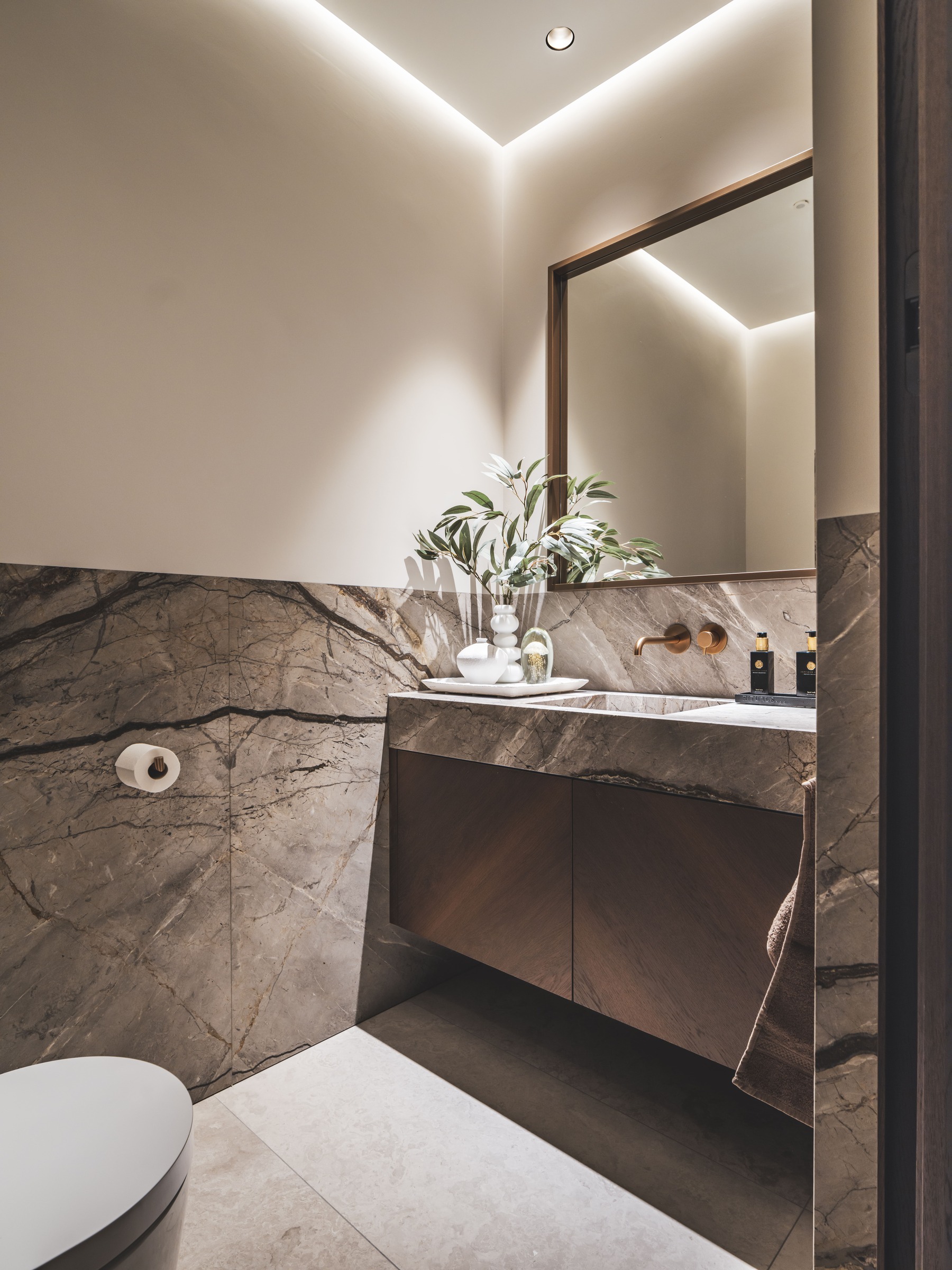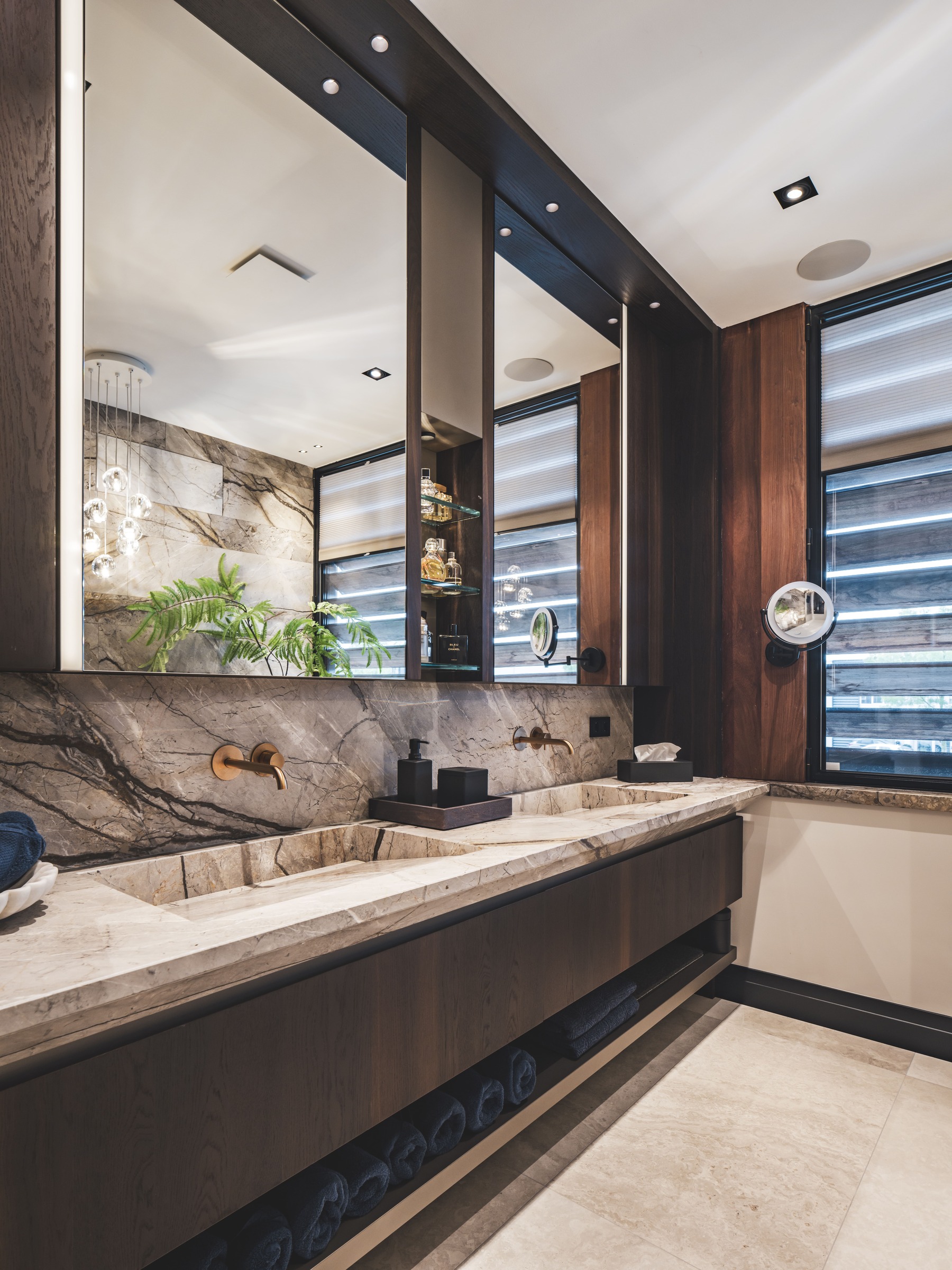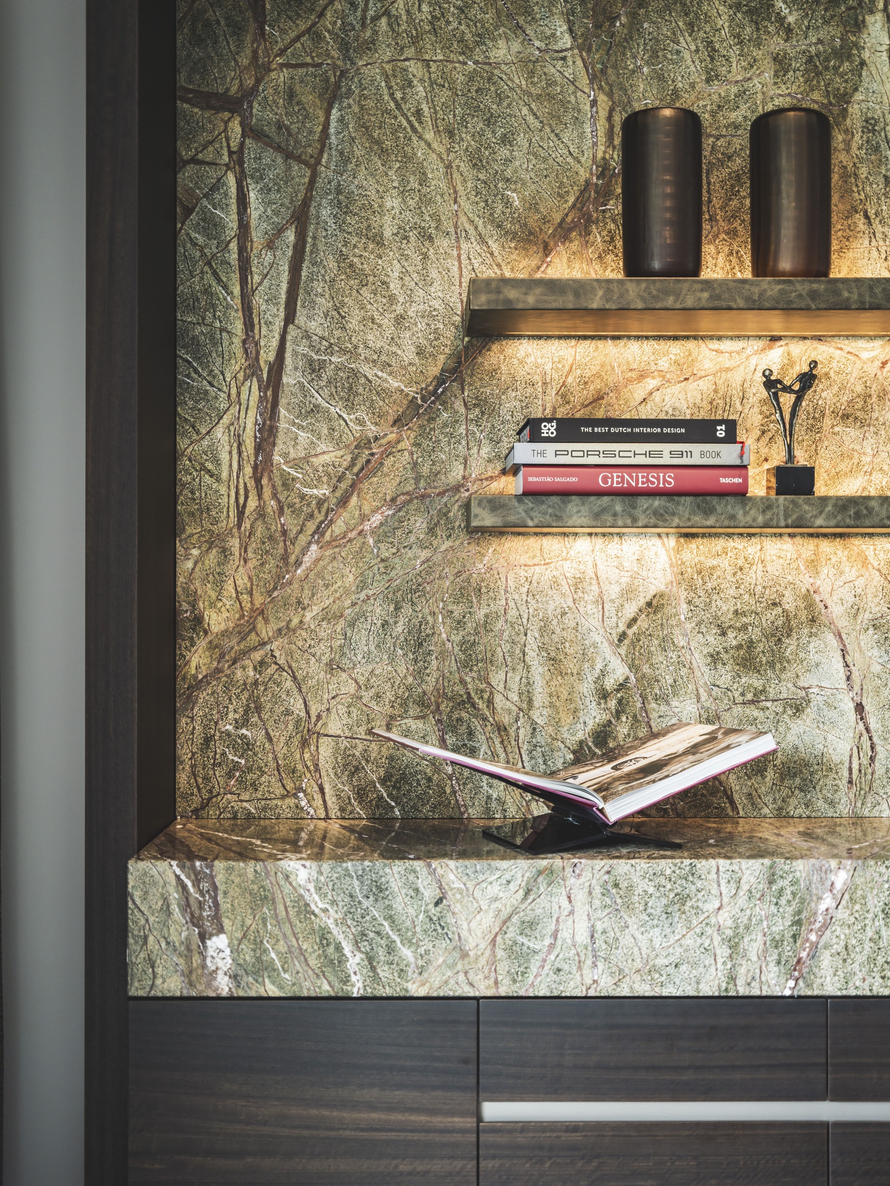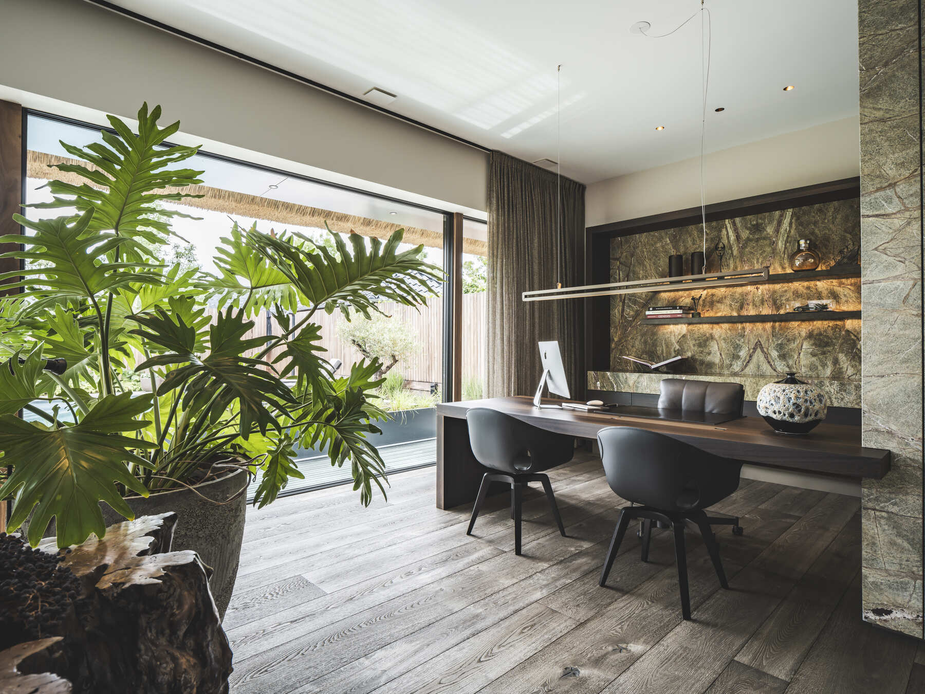 Het interieur van deze luxe high-end villa is ontworpen door architect Eric Kant. Mereno mocht onder andere de living, badkamer, slaapkamer, werkkamer, en garderobe realiseren. In de volledige villa zijn dezelfde, natuurlijke materialen gebruikt om écht een totaalinterieur te creëren. De natuurlijke materialen geven de woning een warme, uitnodigende uitstraling.