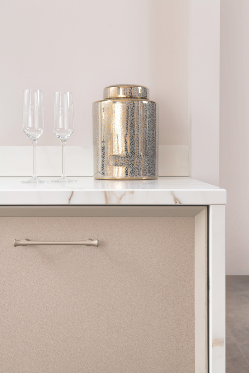 Moderne Mereno Caprese showroomkeuken in een warme beigetint