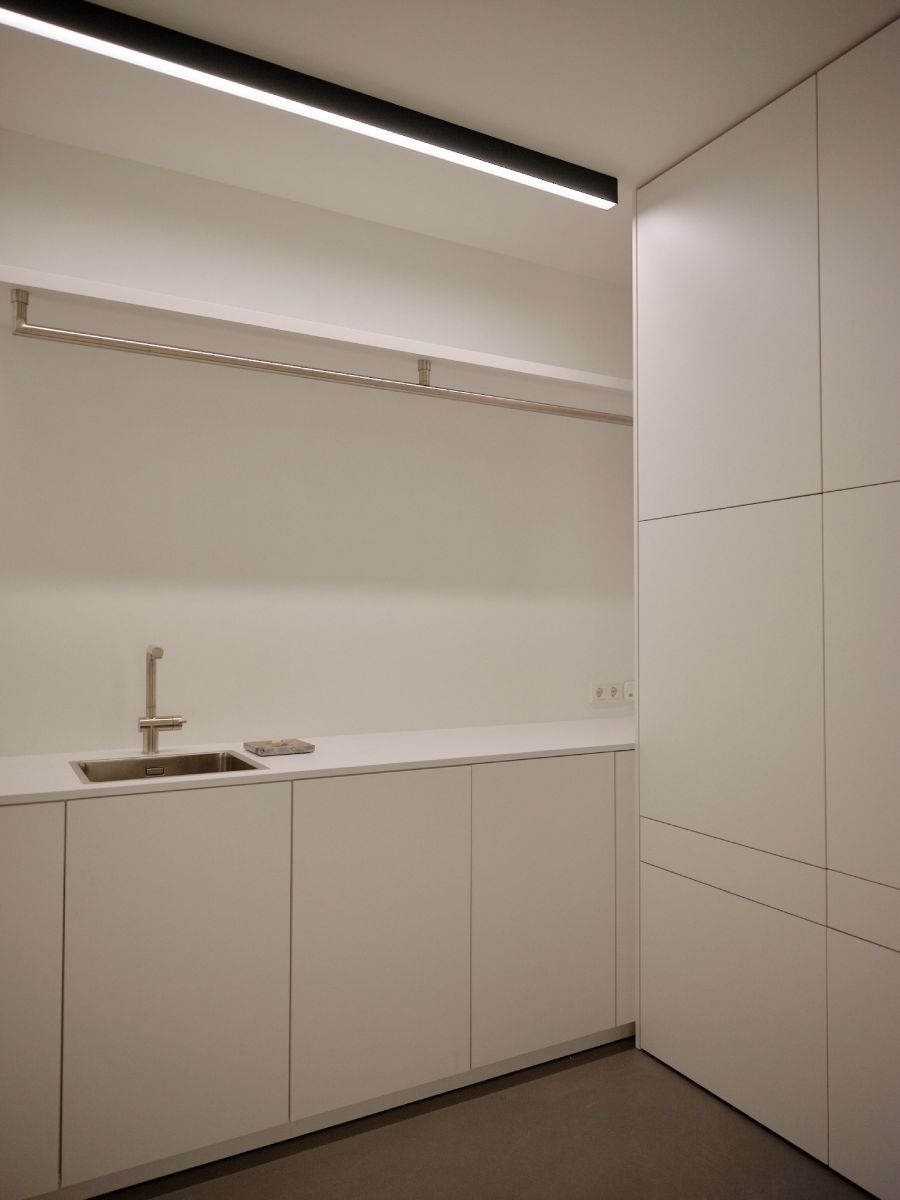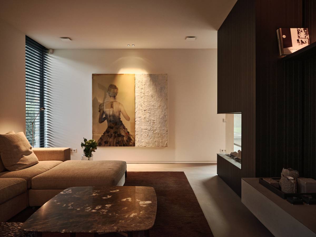 Deze designwoning is ontworpen door architect Rob Zeelen. In de keuken is veel gebruik gemaakt van grijstinten. Op deze manier wordt er een ton-sur-ton sfeer gecreƫerd die bijdraagt aan de rustige uitstraling van de keuken. In de living is een haardmeubel gerealiseerd wat de warme sfeer van de gehele woning versterkt.